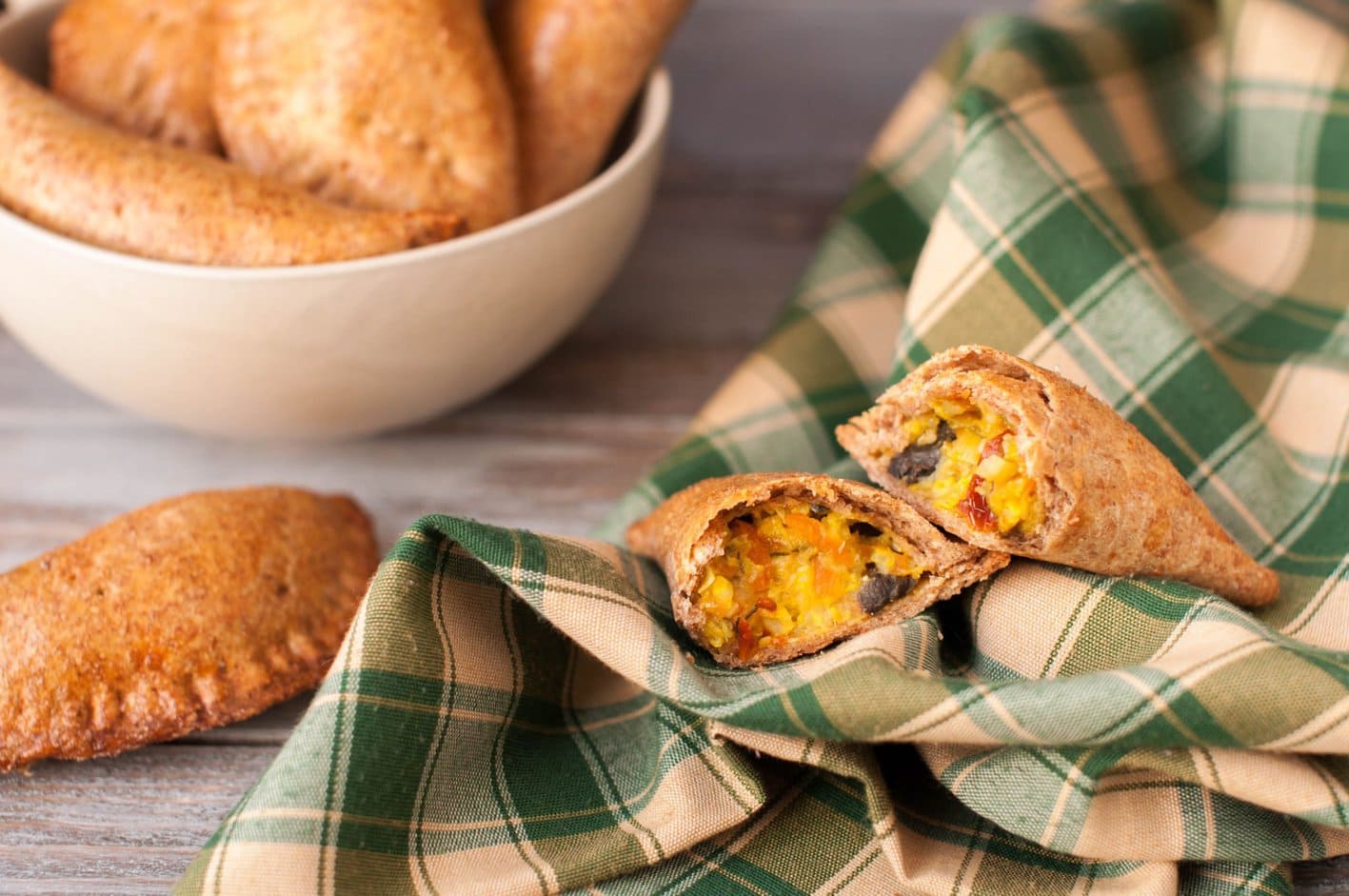 Reprenez la pâte brisée du frigo. Étalez-là à l’aide d’un rouleau à pâtisserie jusqu’à obtenir une couche assez fine. Découper des formes de disques ronds à l’aide d’un moule (vous pouvez utiliser une grande tasse ou petite assiette). Garnissez avec la farce au milieu du disque et refermez la pâte sur elle-même en appuyant bien les bords avec vos doigts. Vous pouvez également vous aider en appuyant les bords de l’empanada avec l’extrémité dentée d’une fourchette.