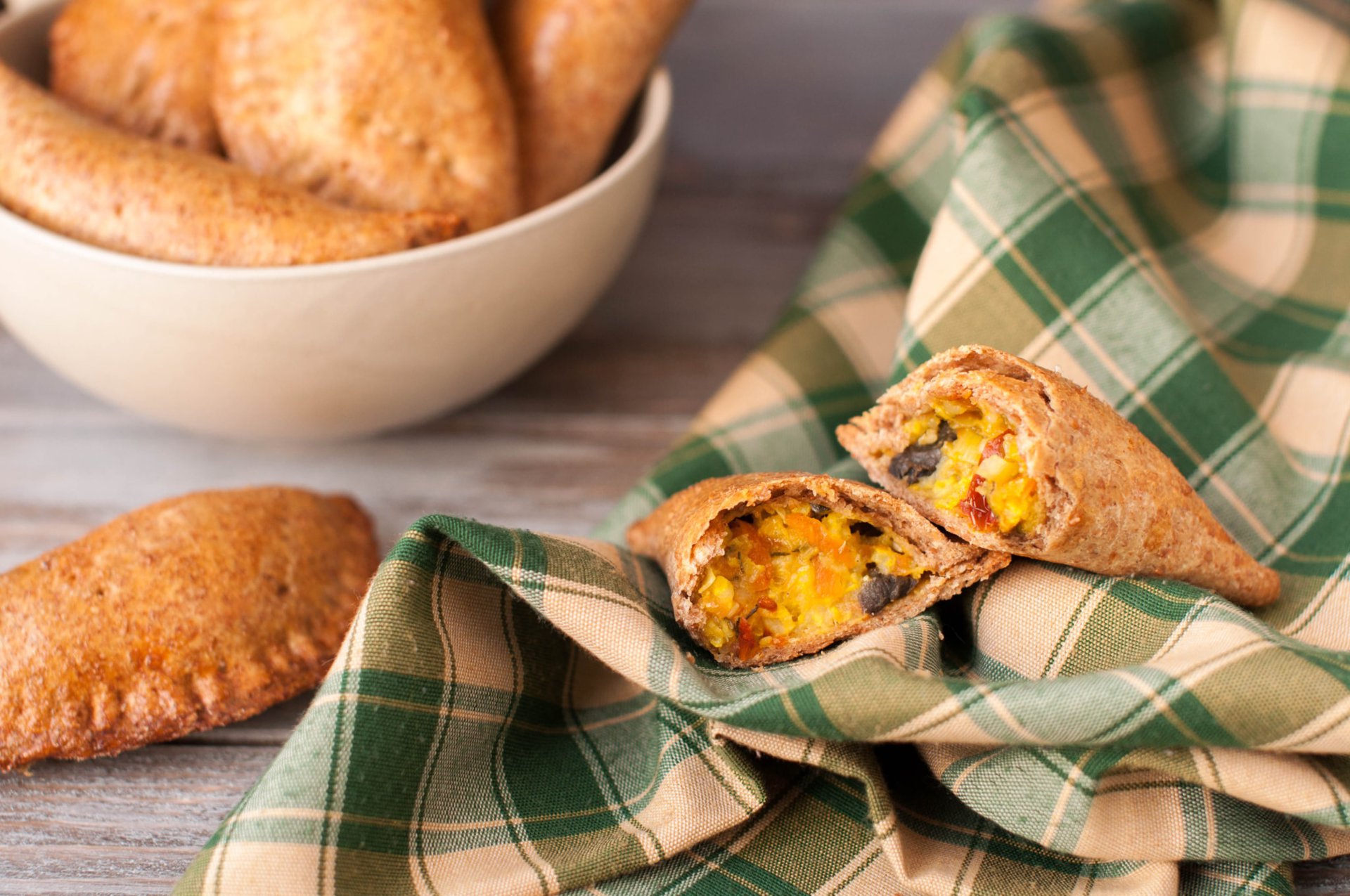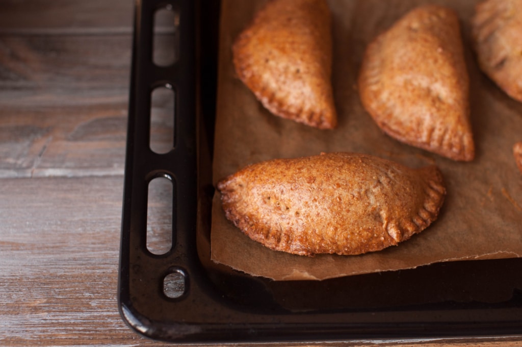 Déposez vos empanadas dans une plaque à four recouverte de papier sulfurisé. Pour rendre vos empanadas plus brillantes vous pouvez badigeonner les empanadas de jaune d’œuf mais ce n’est pas obligatoire. Personnellement j’ai aussi piqué la surface avec une fourchette mais je ne suis pas sure que cela soit nécessaire. Enfournez pendant 15 minutes et voilà !